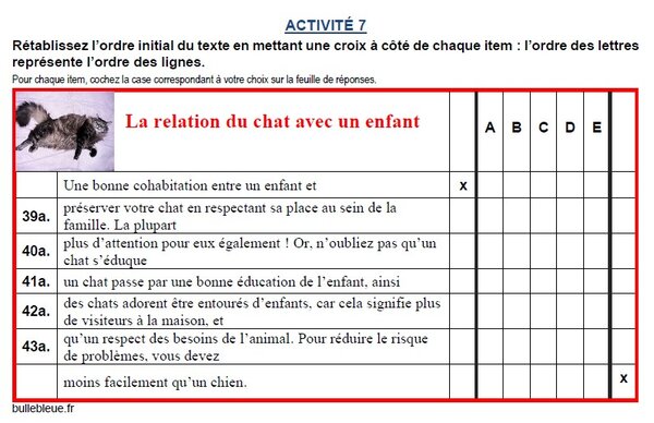 Si l’on coupe le texte au niveau des groupes syntaxiques, l’élève doit s’appuyer sur sa connaissance de structures syntaxiques pour reconstituer l’ordre correct.