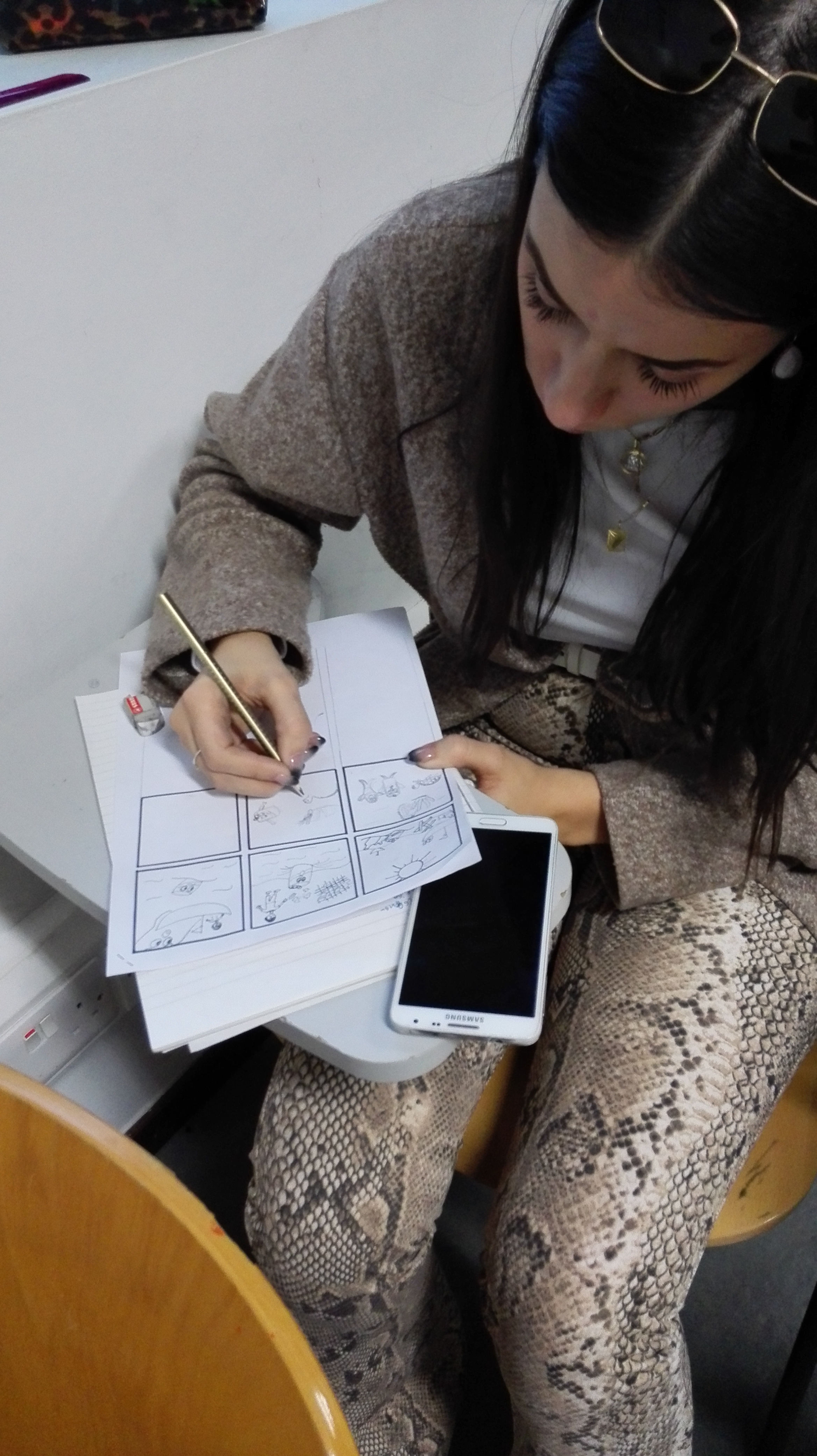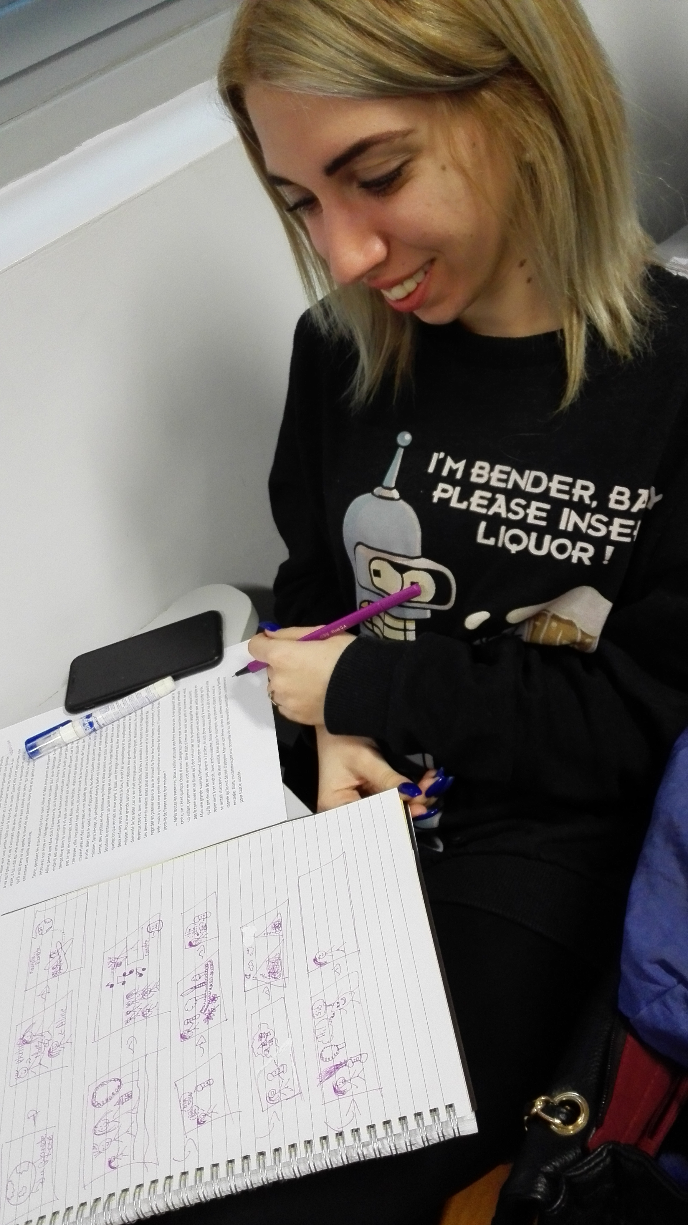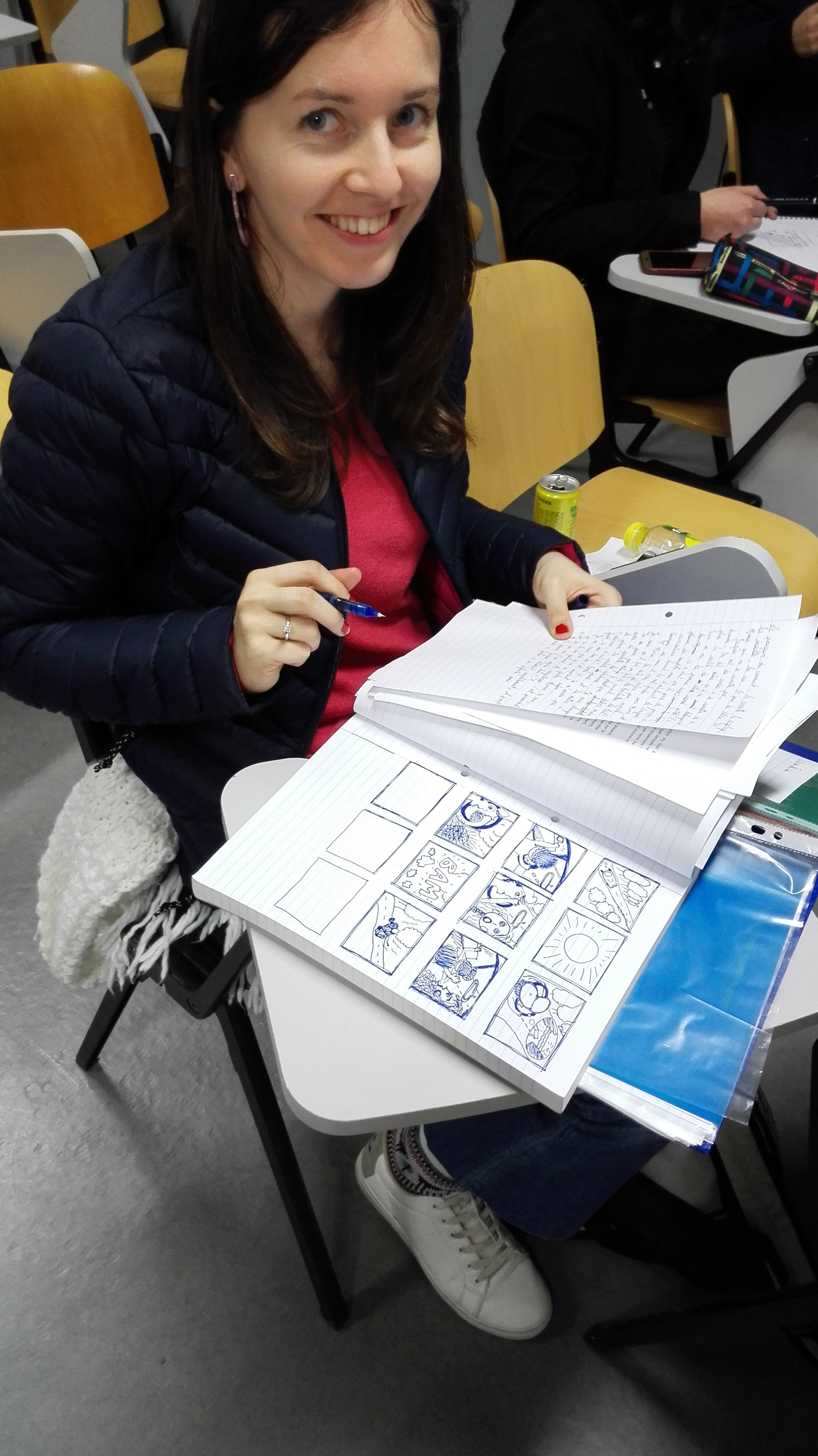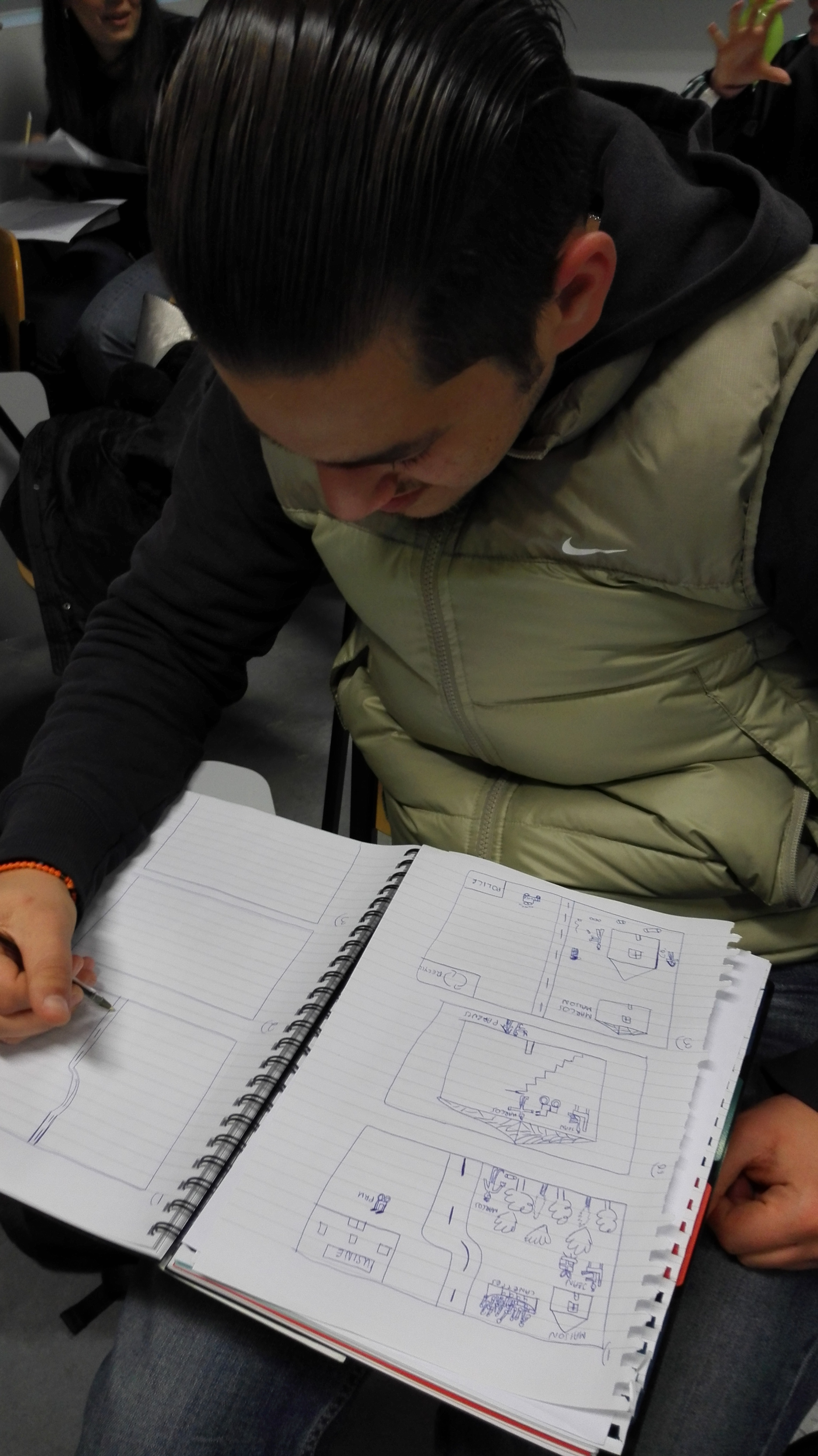 Le point de bascule est venu d’un déplacement très simple. J’ai cessé de demander d’écrire. J’ai demandé de dessiner. Non pour illustrer un texte à venir, mais pour faire émerger ce qui manquait précisément au texte : une situation, un cadre, des présences, des relations. La consigne était minimale, mais contraignante. Il fallait que quelque chose se passe quelque part, que quelqu’un soit impliqué, que l’objet – la canette – ait une place dans un ensemble.