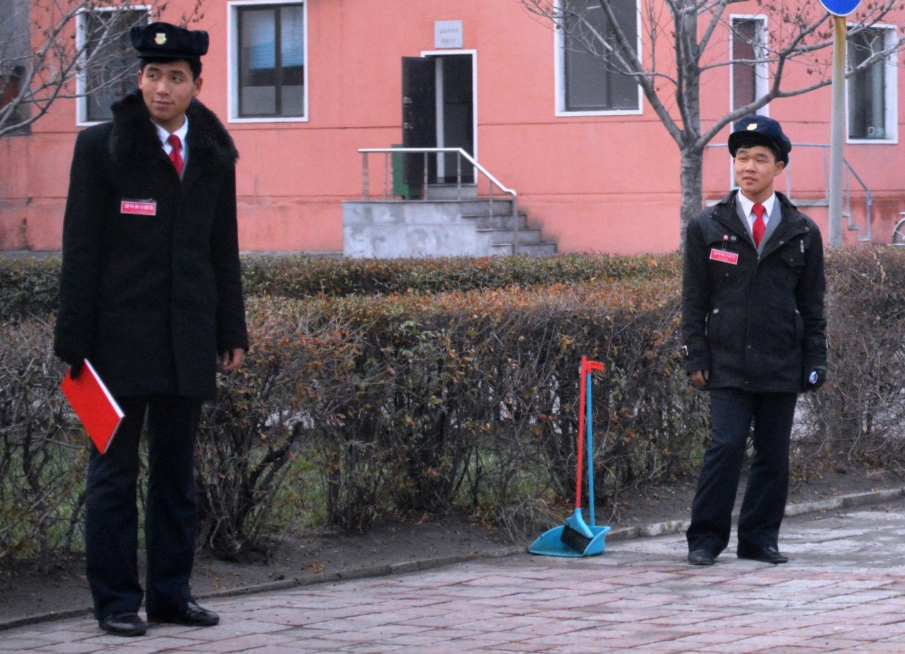 Figure 1 - Étudiants nord-coréens à un carrefour de Pyongyang
