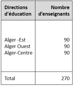 Nous rappelons que notre population est composée d’enseignants de langue française du cycle secondaire dépendant de la wilaya d’Alger. Elle se compose de 270 enseignants distribués comme l’indique le tableau suivant (Fig. 3) :