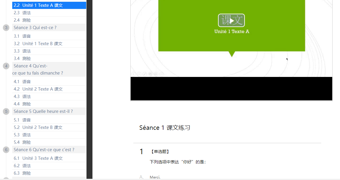 Le travail à distance est hébergé par une plate-forme SPOC, Fanya qui présente des fonctionnalités similaires à celles de Moodle, mais avec une interface plus simple. Administré par le service de la scolarité de l’université, l’espace de cours n’est accessible qu’aux étudiants qui sont inscrits à la formation. L’interface de la plate-forme s’apparente à un espace de travail virtuel, constitué de 2 colonnes (cf. Figure 3) : s’affiche sur la colonne latérale une liste des cours disponibles ; le bloc central affiche l’ensemble des éléments du cours (textes, vidéos et exercices). Ce choix de la plate-forme Fanya est justifié par sa facilité d’usage, du fait qu’elle présente un nombre limité de fonctionnalités simples à utiliser pour que les étudiants puissent s’en servir d’une manière autonome.