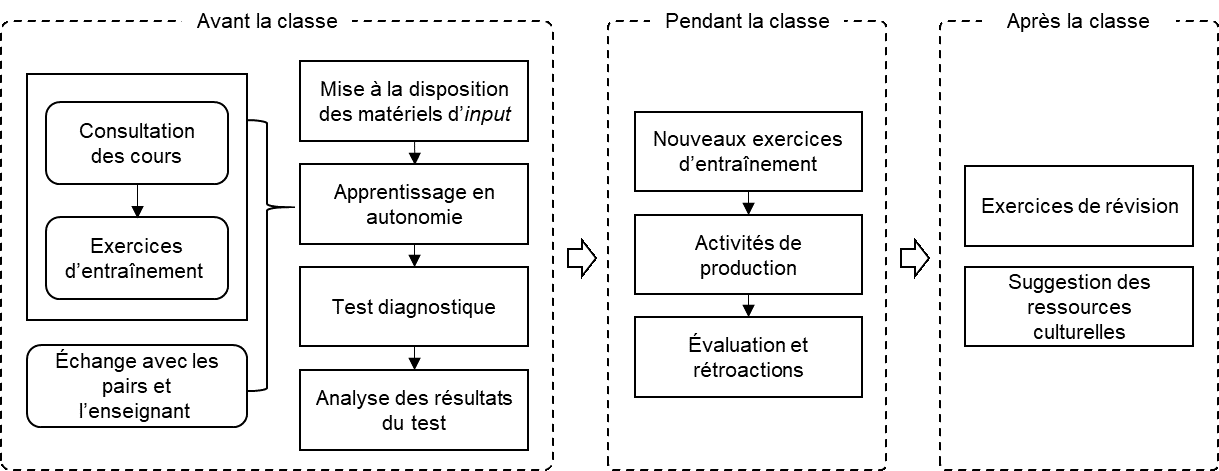 Wang, N., Chen, J. W. et Zhang, D. D.(2016). SPOC-based flipped classroom of college English : construction of an efficient learning model. Technology Enhanced Foreign Language Education, 169, 52-57. [Texte en chinois]