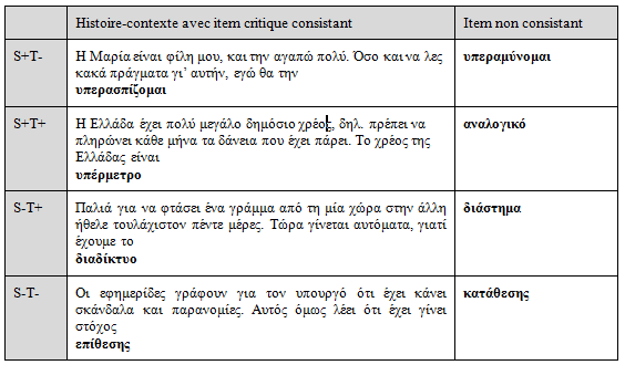 b) cette segmentation ne donne pas toujours le même résultat, en termes de bénéfice de traitement/évaluation : les mots construits où le préfixe est saillant conduisent l’apprenant à discriminer plus facilement entre mot consistant et inconsistant (par exemple, entre υπερασπίζομαι et υπεραμύνομαι), en revanche les items non saillants ne conduisent pas à une facilitation ;